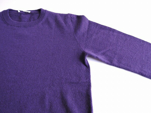 カラーはパープルで、柔らかな肌触りのカシミヤニット素材で仕立てられています。