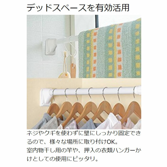 室内物干し用の竿や、押し入れの中での衣類ハンガー掛けとしての使用に最適です。