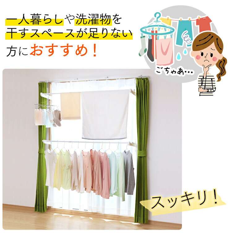 【ポイント5倍】物干し 室内 窓枠物干し 物干し 室内 室内物干し 窓枠 2段タイプ 物干し竿 物干し台 伸縮 つっぱり棒 伸縮物干し 梅雨 部屋干し MW-260NR アイリスオーヤマ 送料無料 コンパクト 省スペース